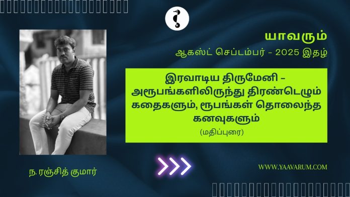 ந. ரஞ்சித் குமார் – சொந்த ஊர் தென்காசி அருகே சேர்ந்தமரம். சென்னையில் ஒரு தனியார் நிறுவனத்தில் பணி புரிகிறார். அச்சு ஊடகங்களில் தொடர்ச்சியாக நூல் மதிப்புரைகள் எழுதிவருகிறார். மின்னஞ்சல்: ranjithlogin01@gmail.com