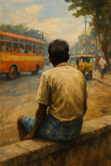 சிதம்பரம் தன்னுடைய கால்களை மதிலுக்கு பின்னால் தூக்கிப்போட்டு பேருந்து நிலையத்திற்கு முதுகைக்காட்டி அமர்ந்தான். இதற்கொரு முடிவுக் காண முடியாதா? பல்லைக் கடித்துக்கொண்டு “என்ன செய்யலாம்?” என்று சிந்தனையை உலுக்கி உலுக்கி யோசித்ததில் வழக்கம்போல் பதிலில்லை. அவனுடைய கால்களை பல தடவை மதில் மீது மோதி வலியேற்படுத்திக் கொண்டான். எதற்கும் பதிலில்லாமல் கேள்விகளை தேனீக்களாக சிருஷ்டித்து குடைச்சல் தரும் கேடுக்கெட்ட மனம்.